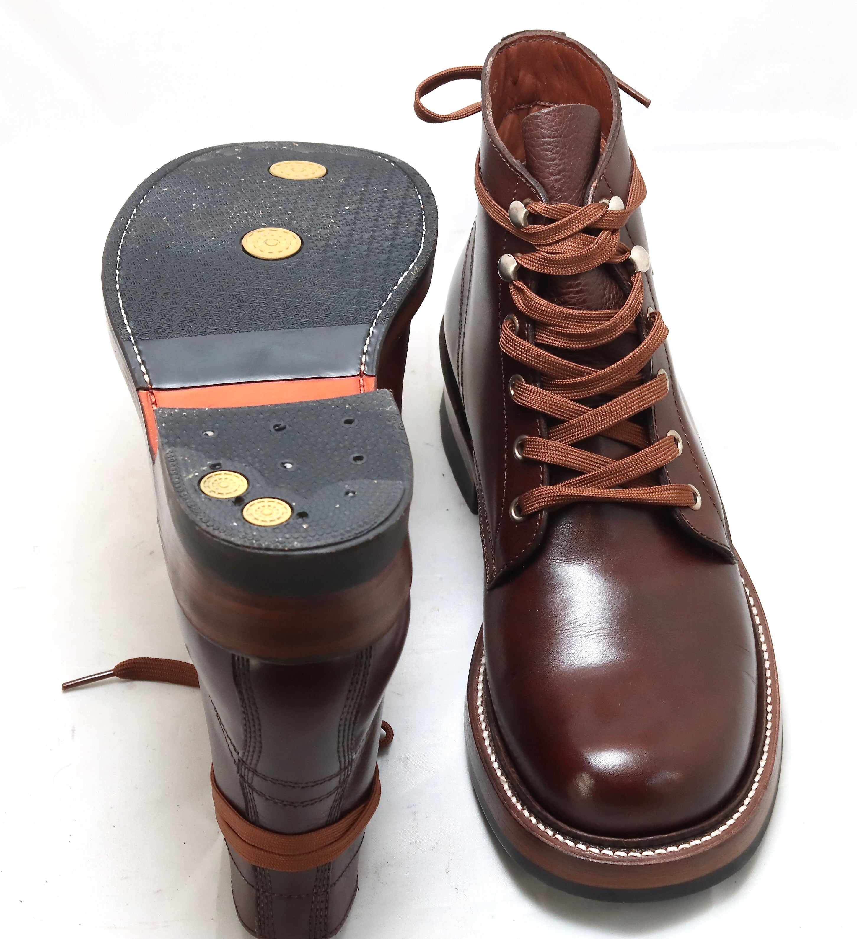 Crafted for durability and comfort, this brown wide-fit boot features premium full-grain Italian calf leather. The construction utilises a Goodyear storm welt, which features an integrated leather rib that deflects moisture and grit. This labour-intensive method ensures the boot is entirely resolable. Designed with a spacious rounded toe box, this boot provides a generous forefoot that respects the foot's natural anatomy while providing immediate comfort for broader feet. A substantial double leather sole is finished with a thick rubber heel top piece and half-sole to provide elevated clearance and superior traction across both urban stone and rural grit.