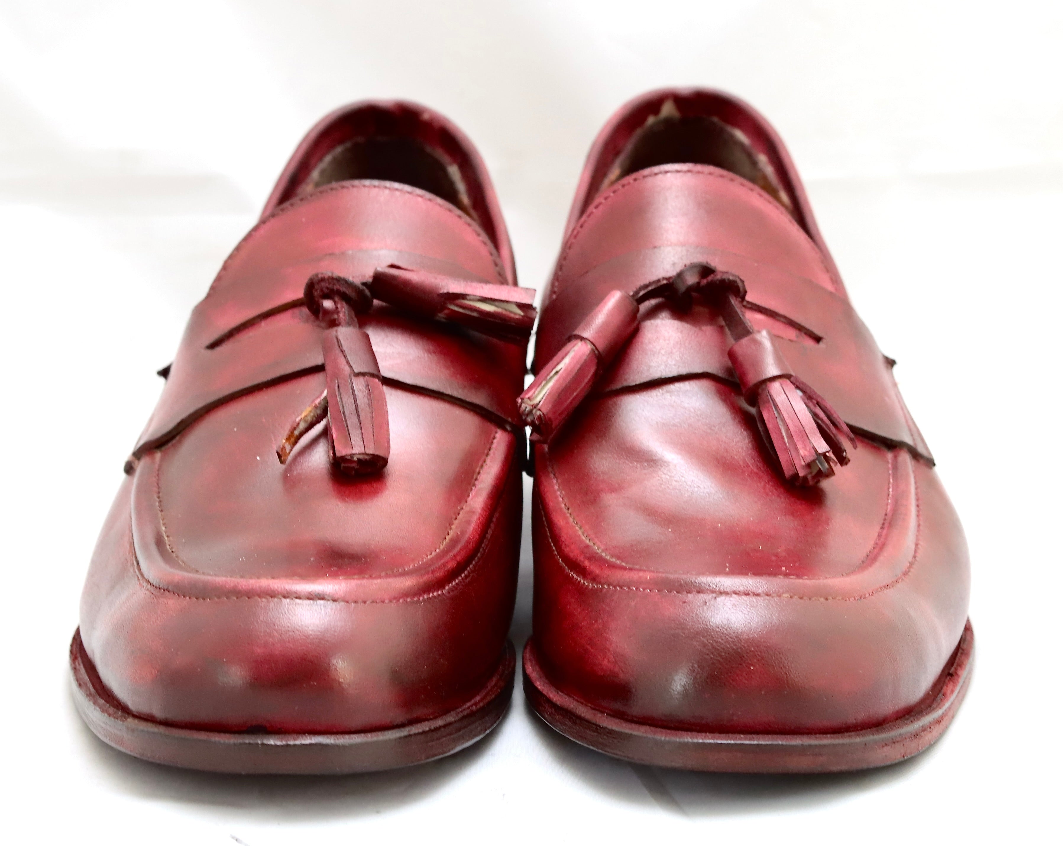 Crafted from hand-dyed burgundy calf leather, this tassel loafer exemplifies refined footwear design. The rich, deep burgundy hue develops character with wear, while the supple calf leather moulds to your foot for personalised comfort. The classic tassel detail adds understated elegance, making it equally at home in professional or smart-casual settings. A timeless investment piece that rewards years of wear.
