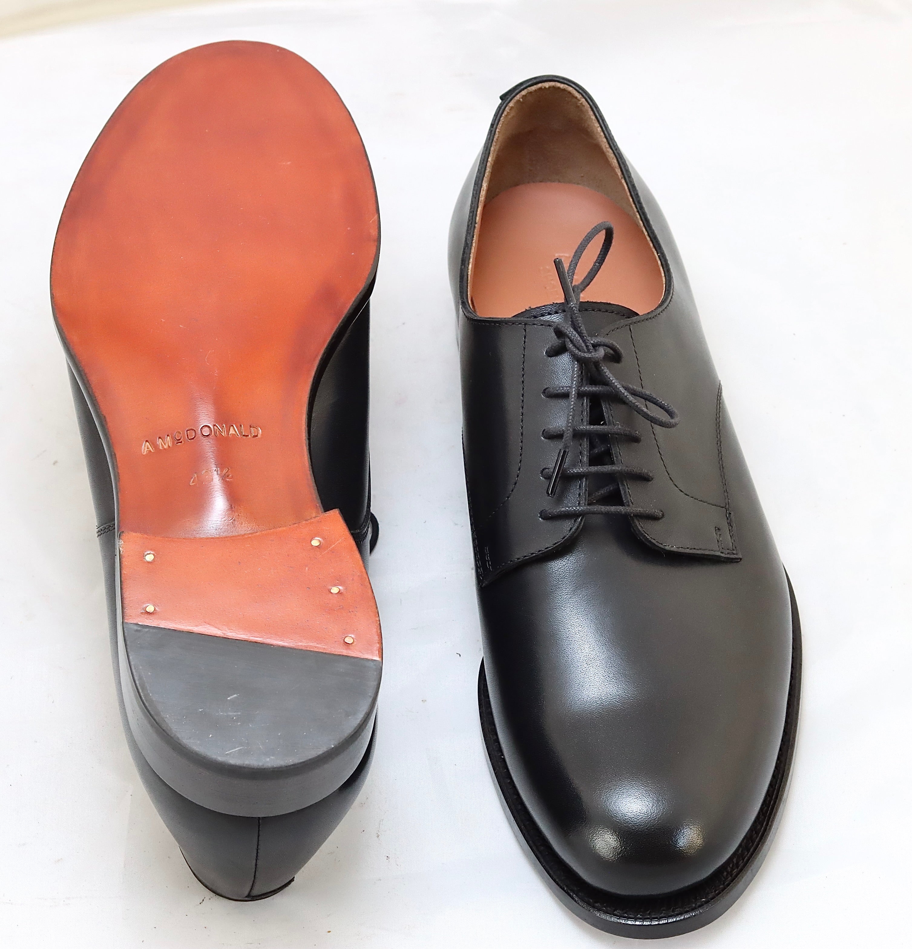 This classic derby shoes provide durability and comfort with a classic aesthetic. This model is crafted from premium black Italian calf leather and secured with a Goodyear welt for superior strength and flexibility. Made on our widest last especially in the toe box to ensure optimal comfort for all-day wear. For business suiting or casual wear.